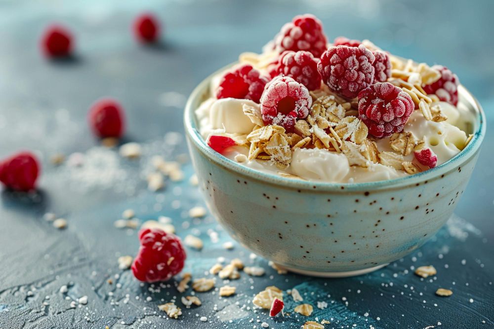 • na śniadanie owsianka z certyfikowanych płatków owsianych, skyr, owoce i dowolne orzechy,