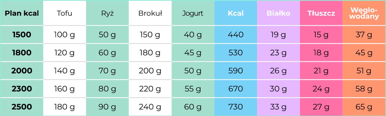 Danie można też zrobić w wersji wegetariańskiej. Jak? Zamieniasz kurczaka na tofu, zerkasz do tabeli i wszystko jasne!