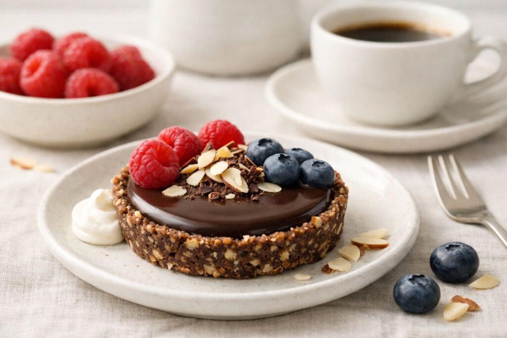 Czekoladowa, kremowa i bez włączania piekarnika – mini tarta na migdałowym spodzie to deser, który robi wrażenie przy minimalnym wysiłku. Idealna, gdy masz ochotę na coś słodkiego, ale w eleganckiej, „fit-friendly” odsłonie. Intensywna czekolada spotyka się tu z delikatnie orzechową nutą migdałów, tworząc deser, który smakuje jak z dobrej cukierni. A najlepsze? Przygotujesz ją szybko i bez pieczenia.
