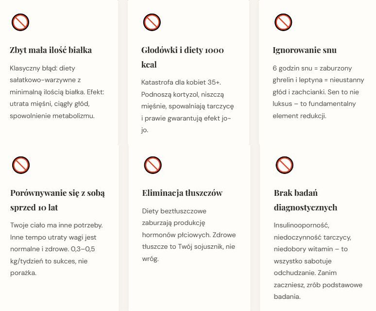 Po 35. roku życia niektóre strategie odchudzania mogą przynosić efekt odwrotny do zamierzonego – zamiast wspierać metabolizm, dodatkowo go spowalniają. Warto wiedzieć, jakich błędów unikać, aby nie sabotować własnych wysiłków i nie wpaść w błędne koło restrykcyjnych diet oraz efektu jo-jo.