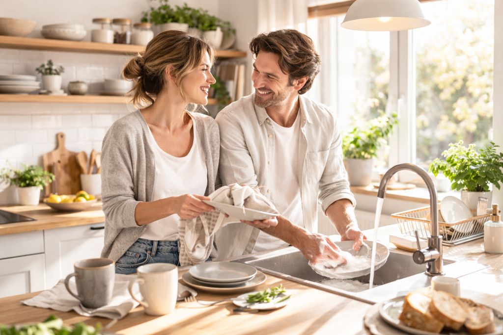 Wskazówka: podzielcie obowiązki nie tylko zadaniowo, ale także mentalnie — każda osoba powinna mieć obszary, za które odpowiada w całości. To jeden z najczęstszych przykładów mental load w związku, czyli niewidzialnej pracy organizacyjnej.