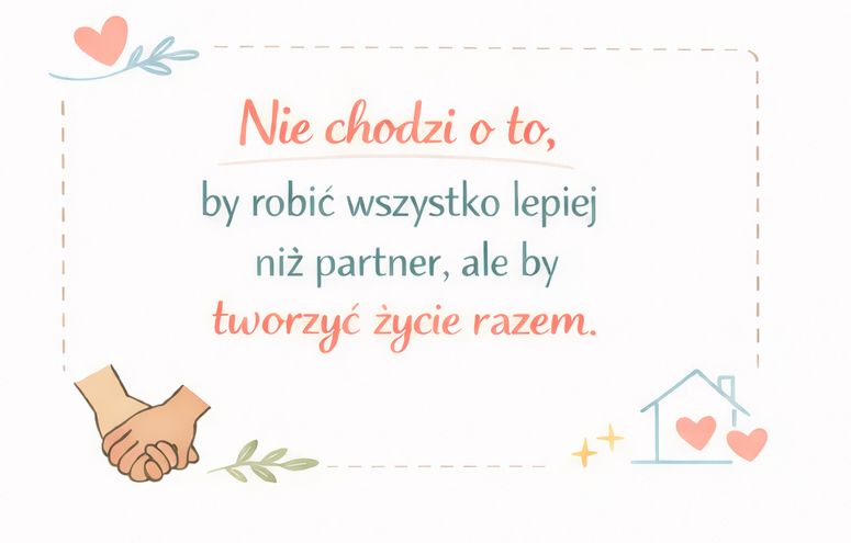 A przecież mamy prawo oczekiwać od partnera realnego zaangażowania nie tylko w wykonywanie zadań, ale też w ich planowanie i organizowanie. Proces odzyskiwania równowagi w związku zaczyna się od uświadomienia sobie, że za relację zawsze odpowiadają dwie osoby — nie jedna.