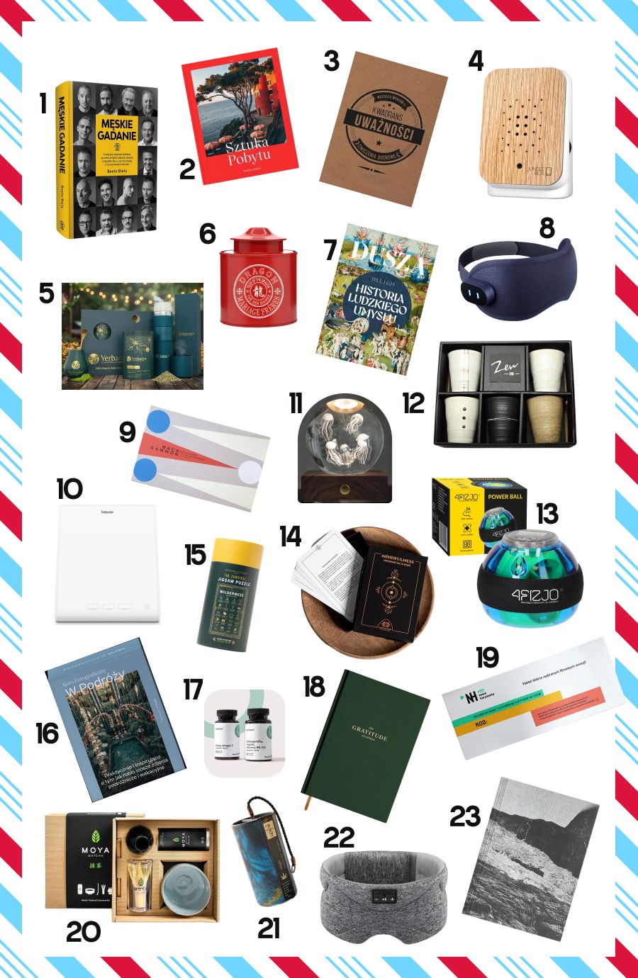 • wellbeingowe prezenty dla umysłu i ducha, które wspierają rozwój, ale i wyciszenie, wewnętrzną równowagę oraz dobrą energię na co dzień,