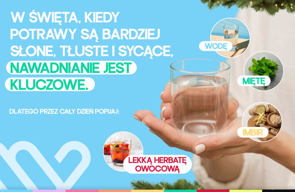 W czasie świąt trzeba dużo pić, ale nie alkoholu! Woda, zioła, ciepłe napary — to podstawa. Dlaczego? Ponieważ stanowią naturalne wsparcie dla układu trawiennego: pomagają regulować trawienie, łagodzą obciążenie przewodu pokarmowego, stabilizują energię i redukują wzdęcia.